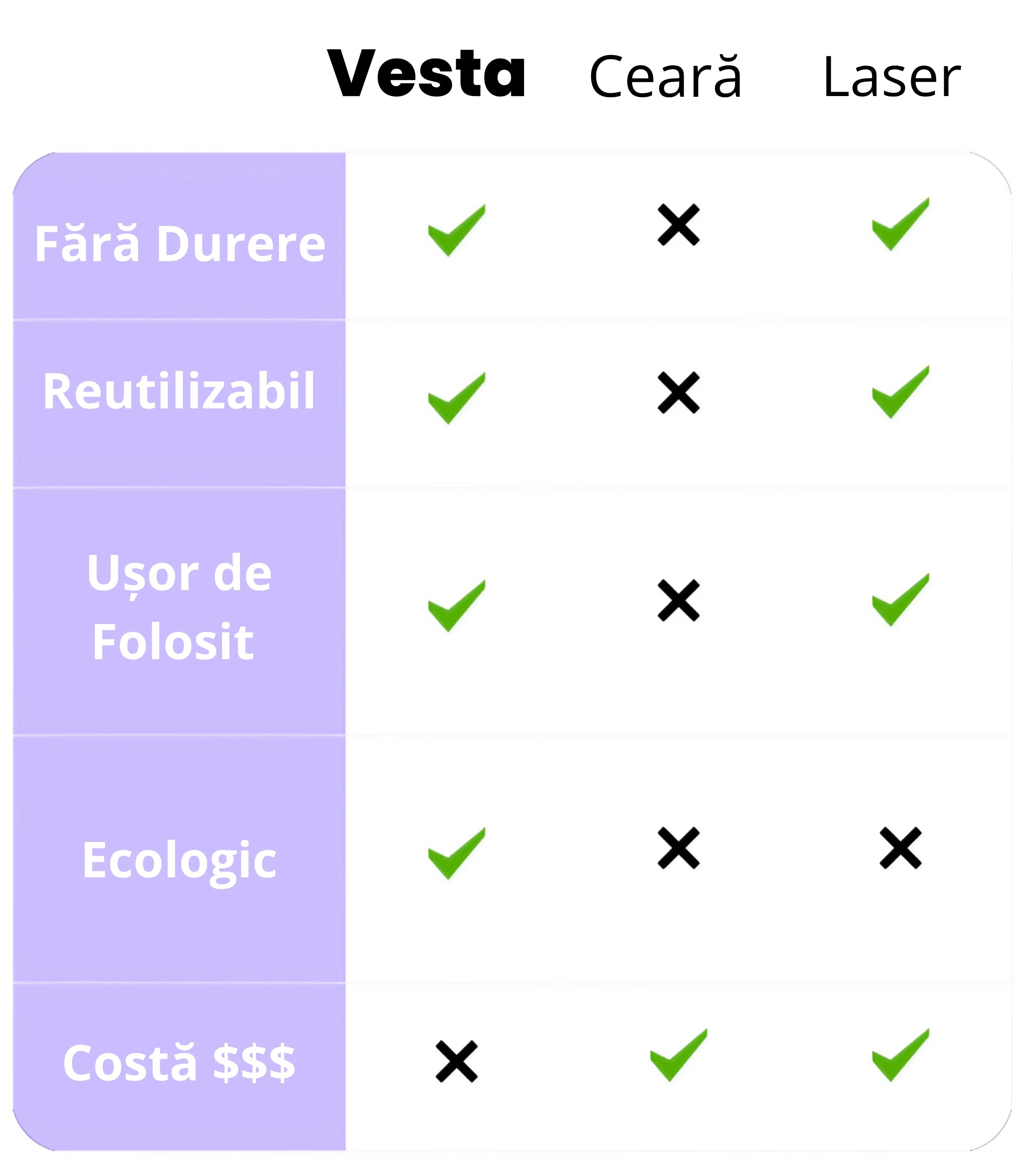 Vesta vs Ceară vs Laser: Piele netedă fără durere sau costuri mari.